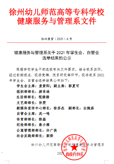 健康服务与管理系关于2021年员工会、自管会选举结果的公示