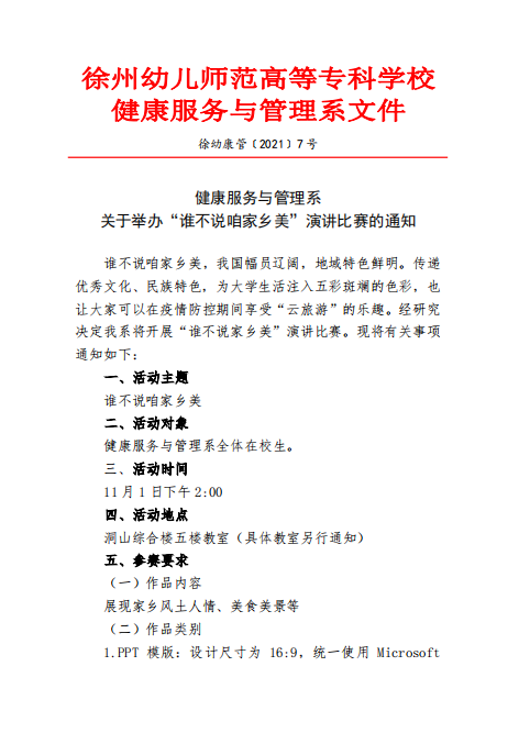 健康服务与管理系关于举办“谁不说咱家乡美”演讲比赛的通知
