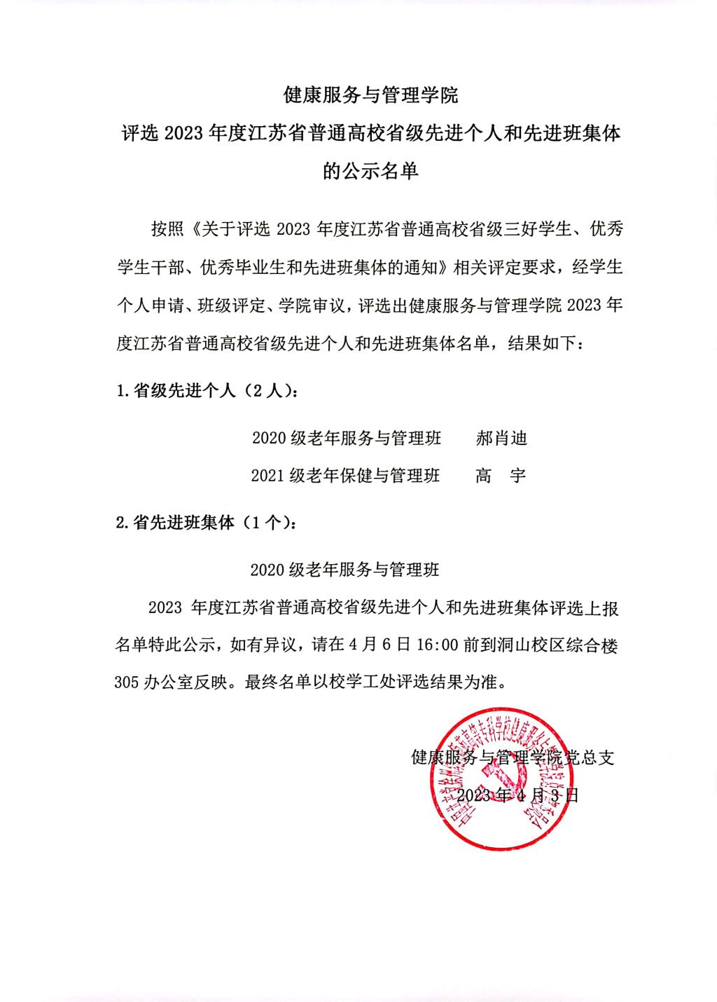 K1体育 评选2023年度江苏省普通高校省级先进个人和先进班集体的公示名单
