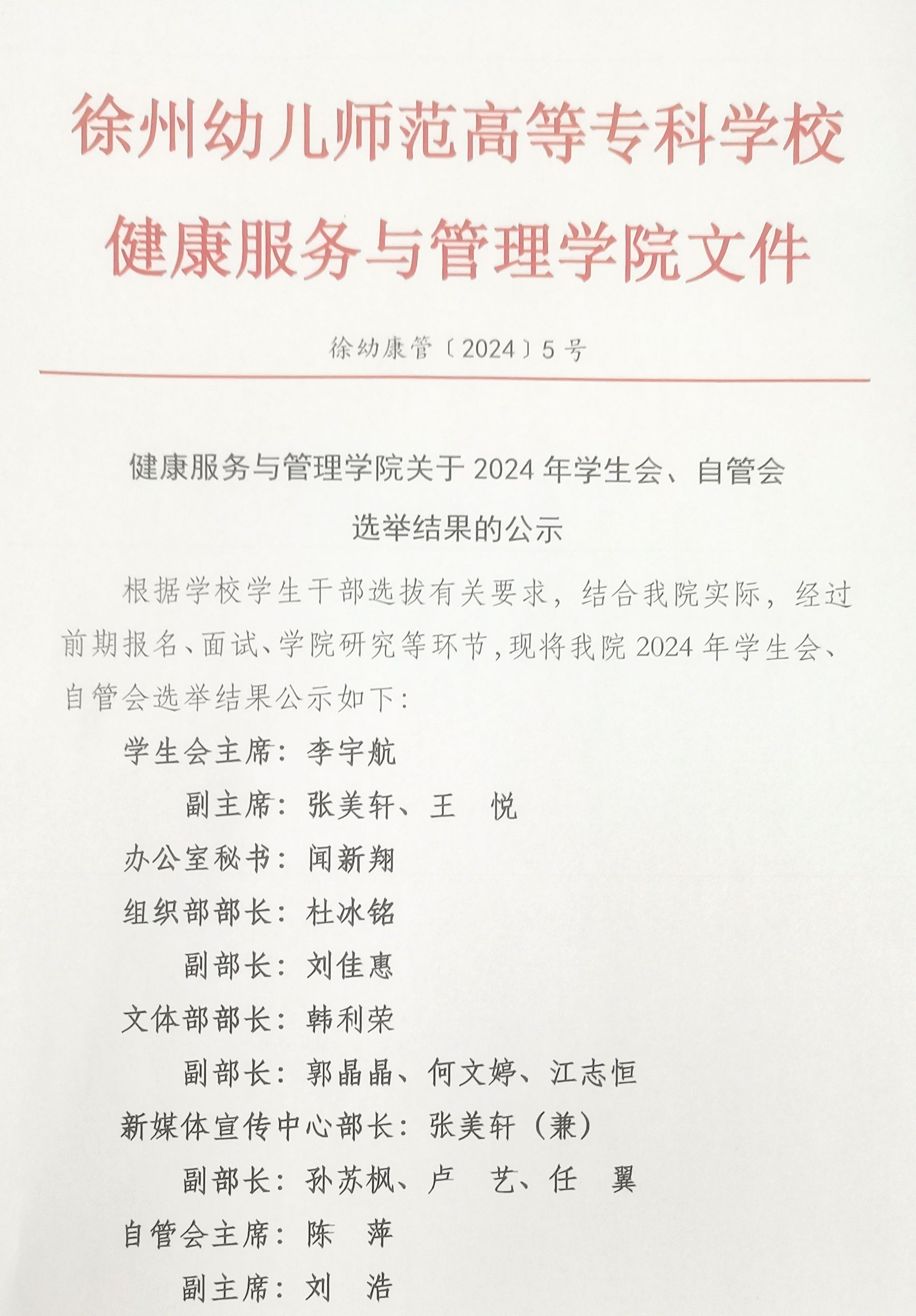 K1体育关于2024年员工会、自管会选举结果的公示