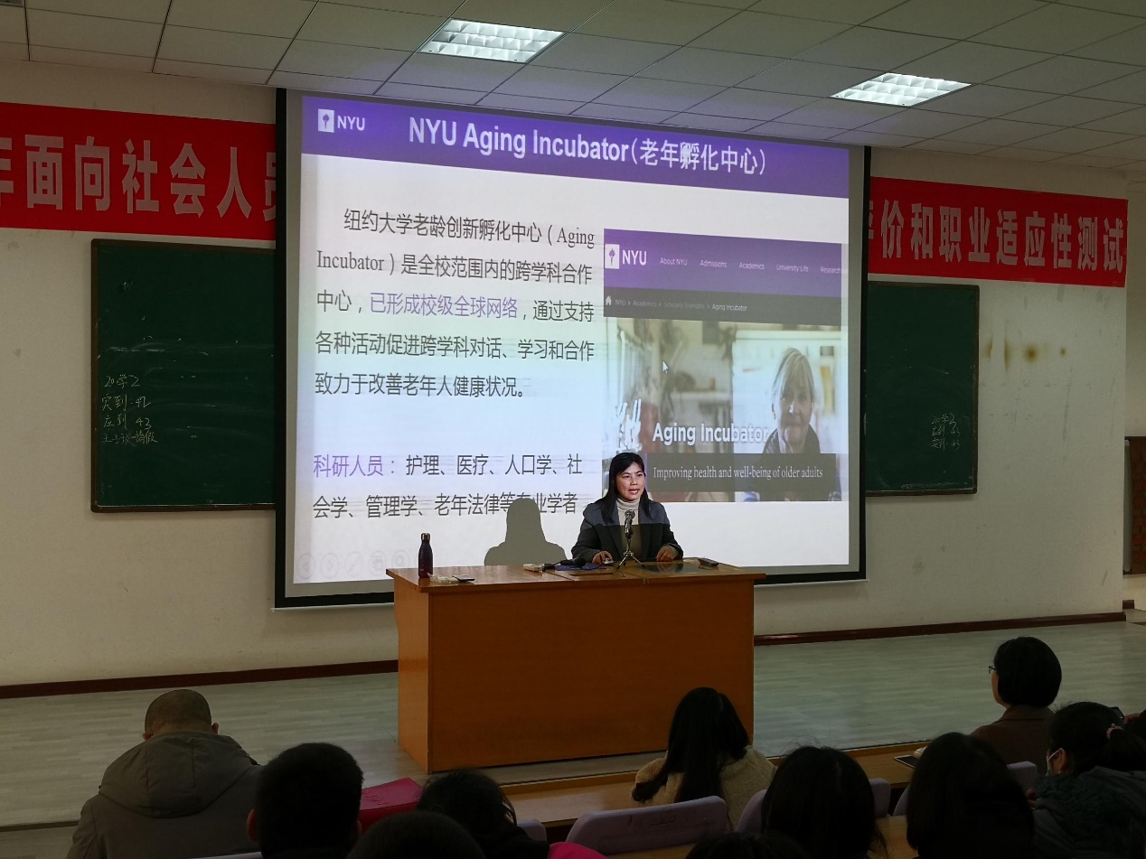 11月30日下午15:20—16:50,我系诚邀徐州医科大学临床护理学教研室主任、医学博士、硕士生导师,汤先萍教授莅临公司,在碧螺校区阶梯教室针对我系教学特点开展《美国老年人家庭护理研究现状及对我国居家养老护理的启示》专题讲座。