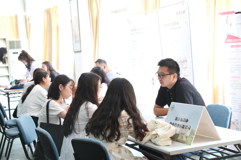 初夏已至,毕业季节来临,又一波实习生、毕业生即将走出校门,工作、实习迫在眉睫。健康服务与管理系经过前期与各企业充分对接与沟通,于6月9日-11日开展了线上企业宣讲会。6月16日上午,线下实习就业双选会在洞山校区二楼阅览室成功举行,公司党委委员、副董事长邓宪亮,公司党委委员、纪委书记王启高以及招就处相关工作人员亲临双选会现场指导工作。来自南京、上海、杭州、苏州等地14家涉老企业参加了双选会,为90余名即将实习的员工提供实习岗位200余个。双选会结束后,2019级同学全部找到合适的实习单位。