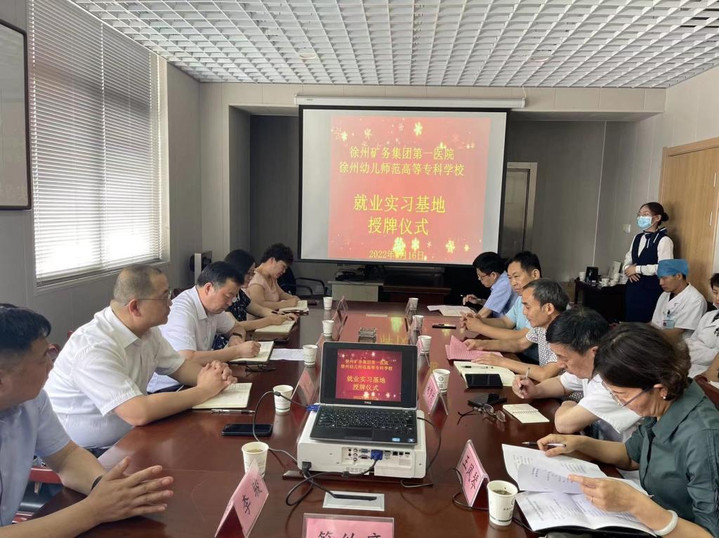 经过深入交流,双方在实习实训、校企合作等方面达成合作共识,邓宪亮与郭玉超代表校企双方签订了合作协议,邓宪亮为徐州矿务集团第一医院就业实习基地授牌。