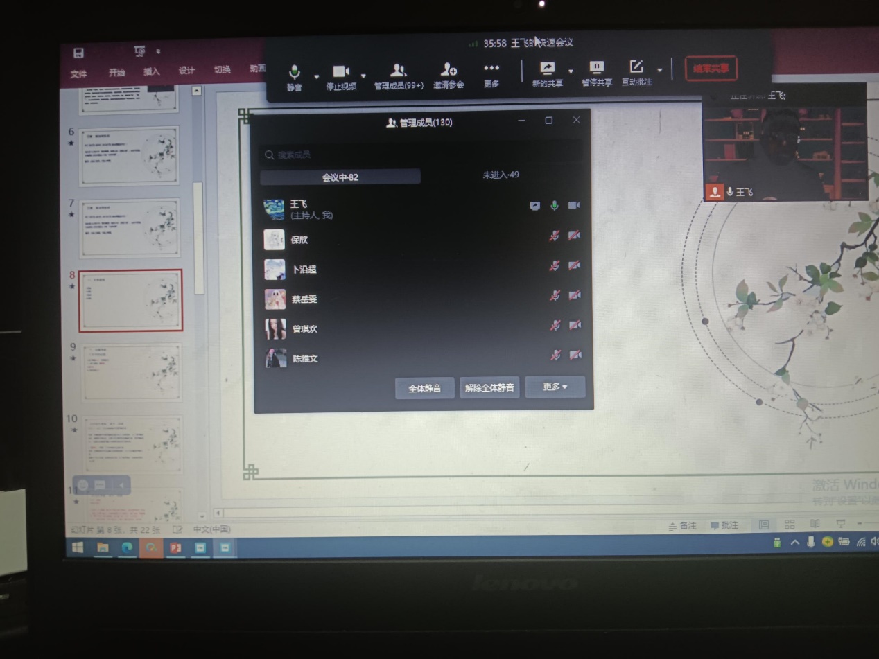 康管公司积极参加2022年公司“学术活动周”活动,组织教师开展学术讲座。王飞老师于12月8日作题为《〈史记·项羽本纪〉中的文学虚构与地理考察》的讲座,22级专科班近百名同学参加在线聆听。于宁志老师主持讲座。