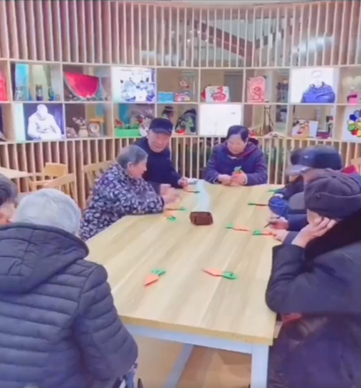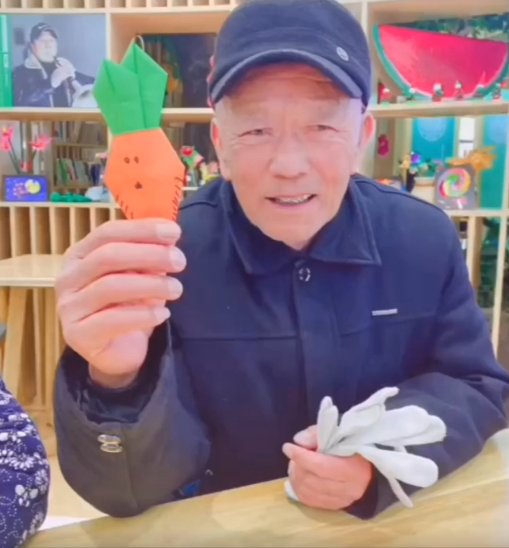 活动中,老师先带领老人们做了锻炼手部灵活度的游戏,随后,向老人讲解手工制作流程和制作要点,在志愿者的带领下,老人们纷纷动手实践。活动现场气氛十分热烈,这些白发苍苍的耄耋老人,虽然做得慢,做的手工却很精细,不一会儿,一个个精美的手工"胡萝卜"出现在老人的手中。