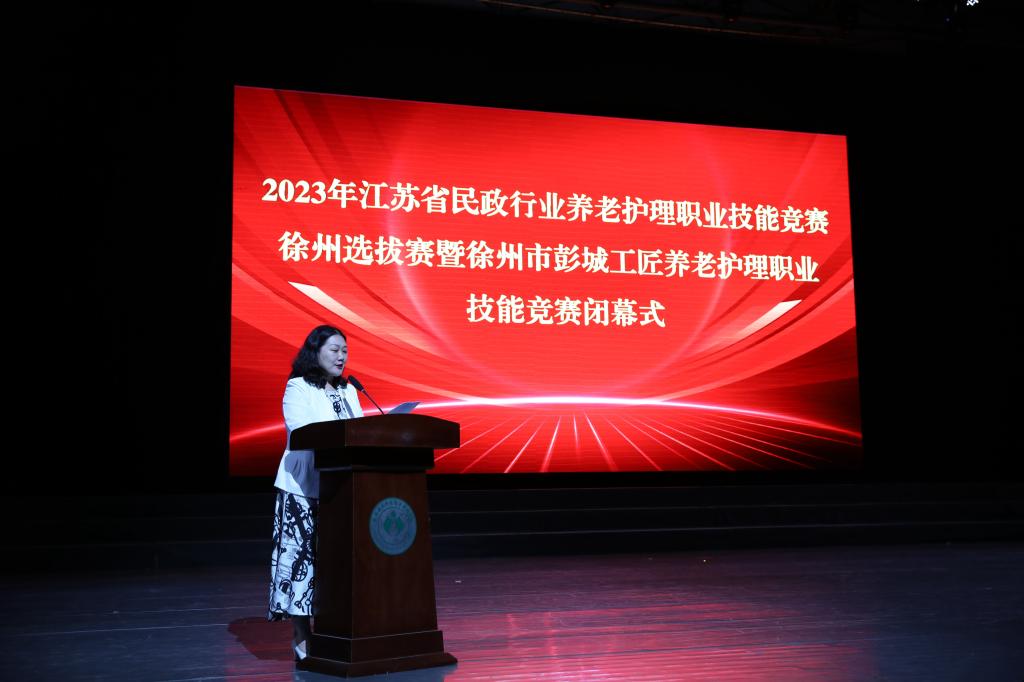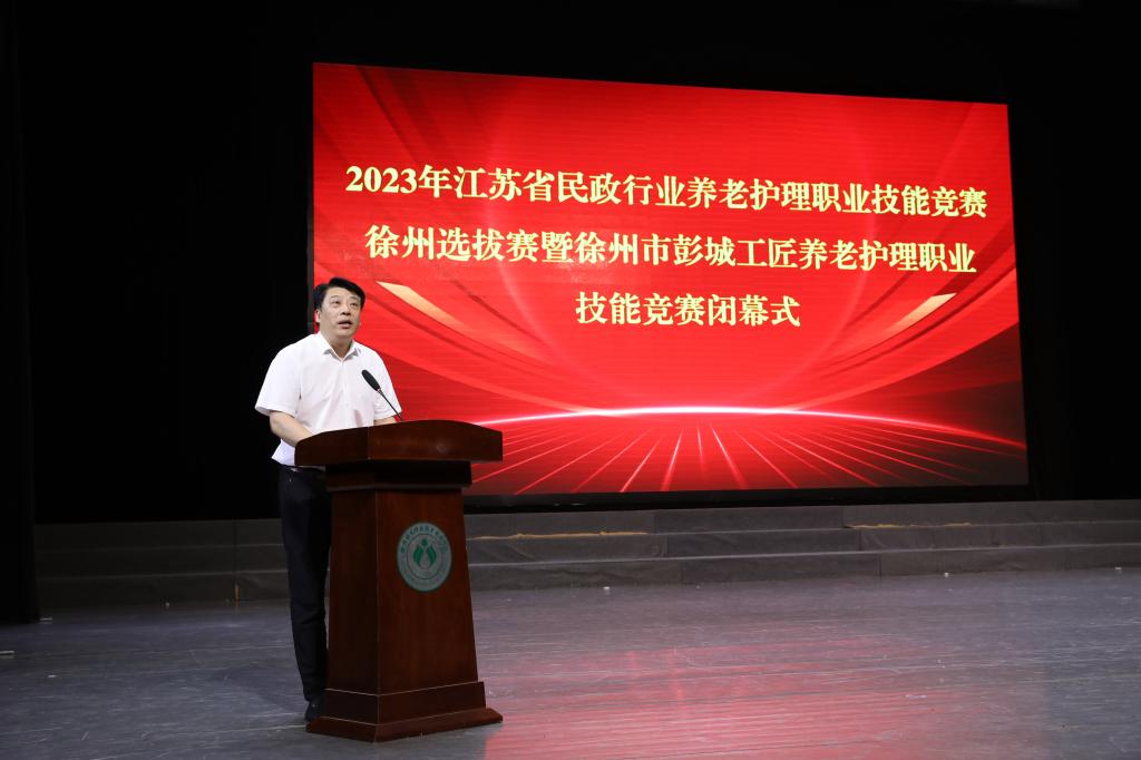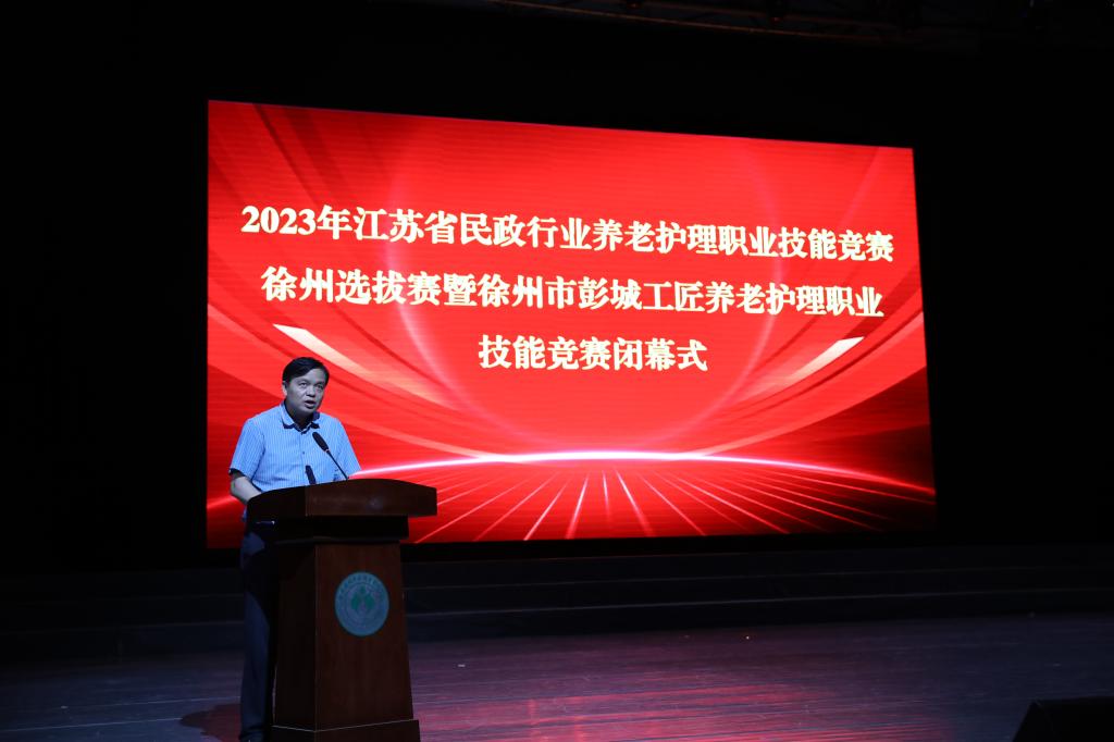 市民政局局长吴彬致闭幕辞。指出,在市委市政府的正确领导和省民政厅的有力指导下,全市民政系统和养老战线深入贯彻落实积极应对人口老龄化国家战略,以打造“徐享颐养”服务品牌为抓手,全力做好“面向夕阳的朝阳事业”。通过高质量开展职业技能培训,定期举办技能大赛,壮大养老服务力量。希望组织参赛的各养老机构和有关院校,要互学互鉴、取长补短,以赛提质、提升水平。我们将乘着这项高水平赛事的“东风”,进一步完善养老政策体系,坚持多元投入,加强人才培育,加快构建多元化养老服务体系;进一步提供良好工作环境和待遇,提升护理员的职业荣誉感和社会认同感;进一步加强协作配合,群策群力共同打造养老服务人才高地,不断满足人民群众日益增长的多层次、多样化的养老服务需求,为“徐享颐养”幸福养老品牌增光添彩。