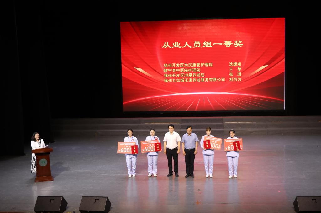 经过一天半紧张、激烈的角逐,顺利完成各项预定赛程,决出了从业人员组个人一、二、三等奖,竞赛组委会对获奖的前22名选手颁发荣誉证书并给予物质奖励,其中徐州开发区为民康复护理院的沈媛媛等4名选手获得一等奖,徐州开发区鸿星养老院王煜等8名选手获得二等奖,沛县福星夕阳红护理院李金兰等10名选手获得三等奖。