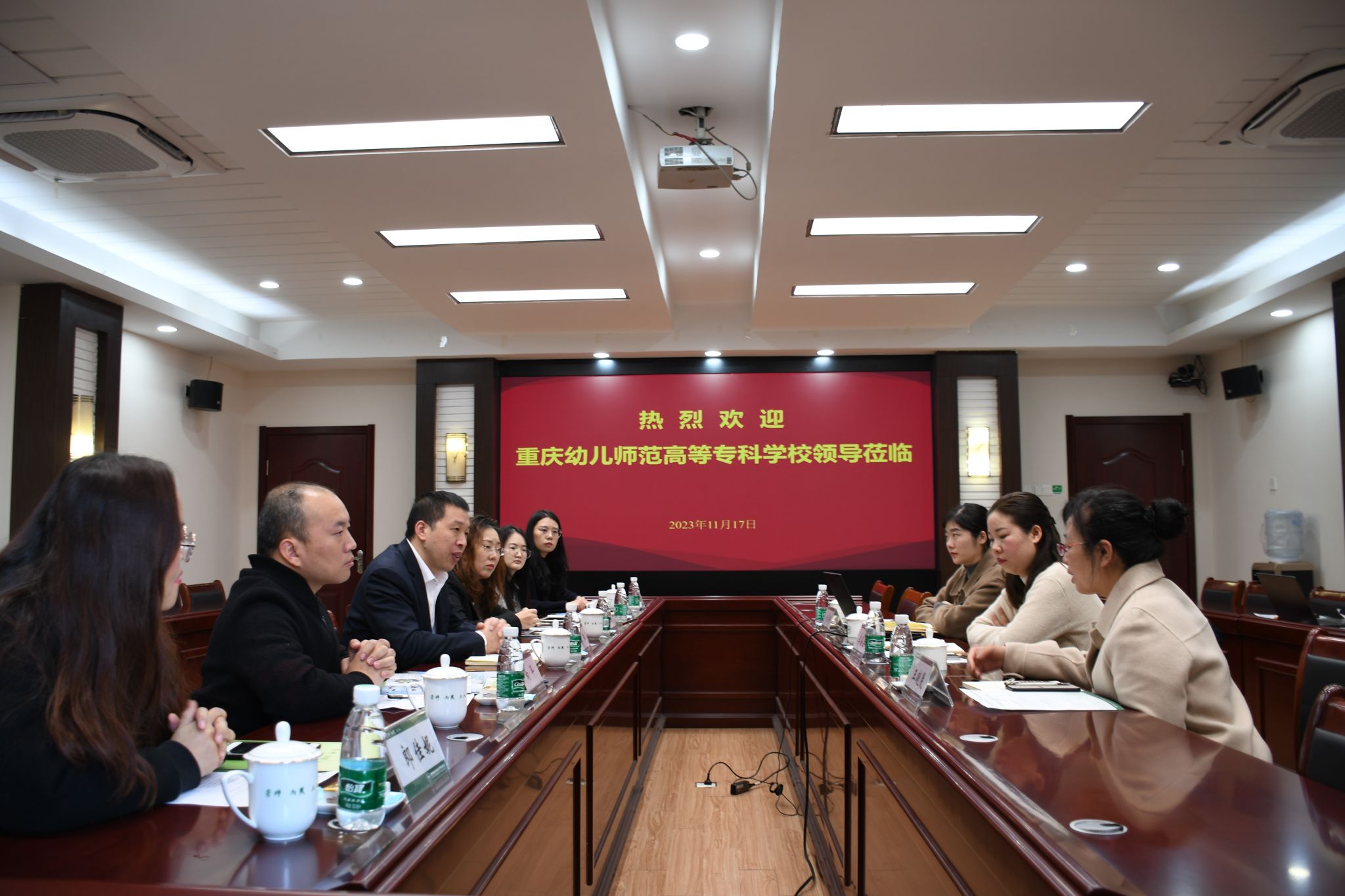 11月17日,重庆幼儿师范高等专科公司教务处副处长谭伟、康养公司专业带头人王娟等一行6人来校考察交流。经理李海芸、副经理王晓斐、经理助理刘倩参加座谈交流。座谈会在洞山校区208会议室举行。