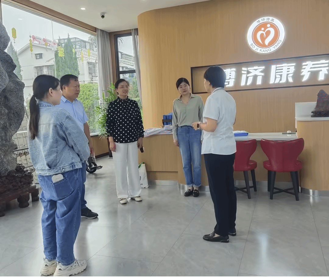 徐州博济养老公寓是江苏首批医养结合示范机构,该企业作为公司长期合作单位,在养老服务领域具有显著的行业影响力。王保升一行在经理唐如莲的陪同下,参观了公寓的居住环境、活动设施,亲身体验了公寓为老年人提供的全方位、多层次的服务,并与在此实践的青年教师刘倩进行了亲切交流。王保升高度赞扬了青年教师们勇于走出校园、深入一线的学习态度,鼓励他们珍惜机会,将理论知识与实践经验相结合,为企业发展贡献智慧与力量,同时也为自己未来的教学与科研工作积累宝贵经验。
