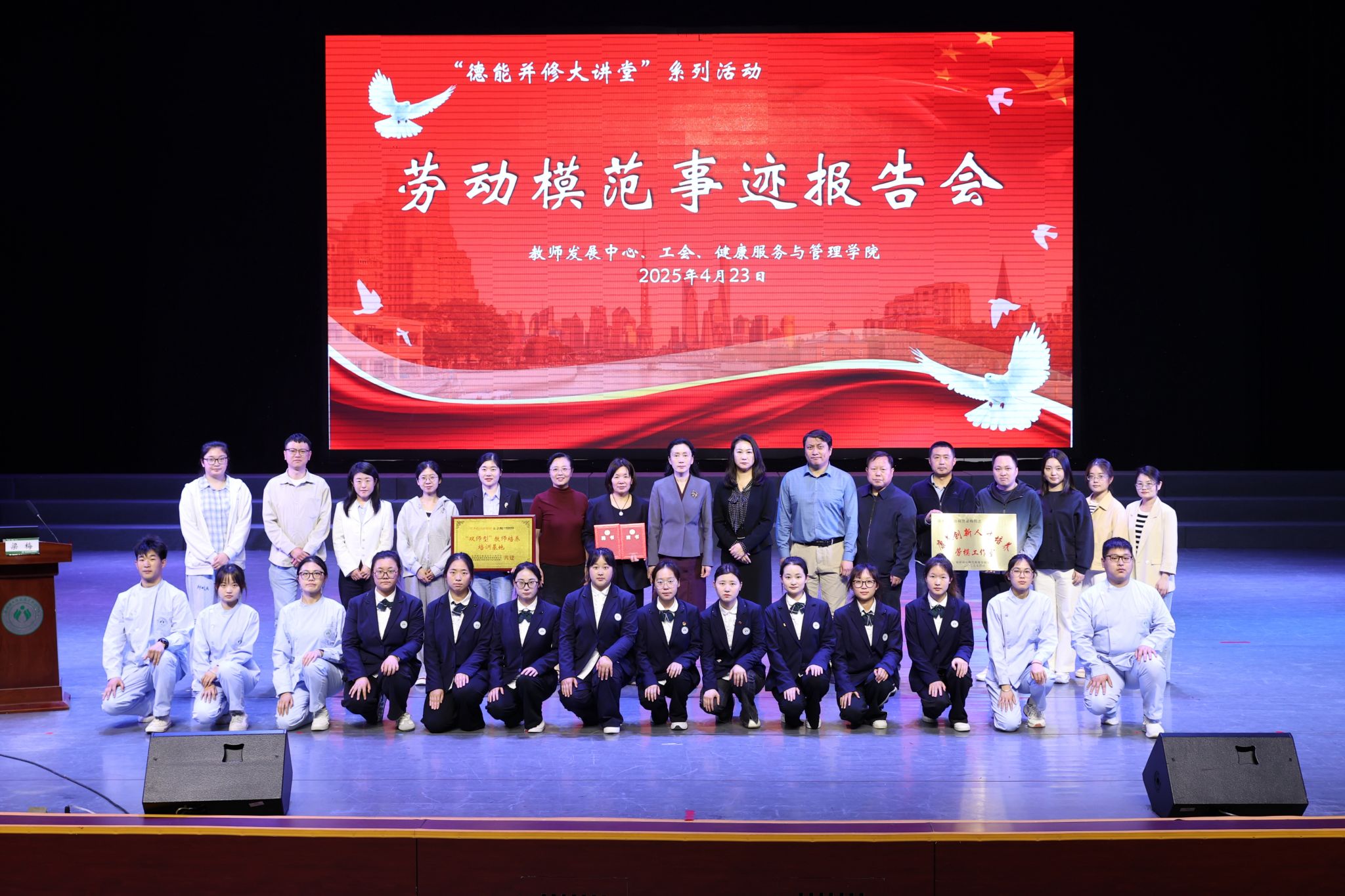 4月23日下午,公司“德能并修大讲堂”劳动模范事迹报告会在洞山校区演播厅举行。徐州市劳动模范、徐州九如城养老服务管理有限公司护理部主任梁梅作专题报告,公司党委副书记、董事长孙卫芳,徐州九如城养老服务管理有限公司总经理王明丽出席活动。报告会由K1体育副经理王晓斐主持,全体教职工及该院师生代表180余人参加。