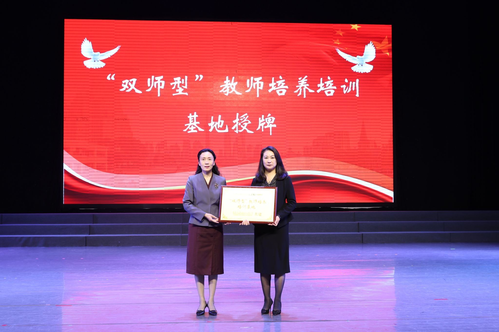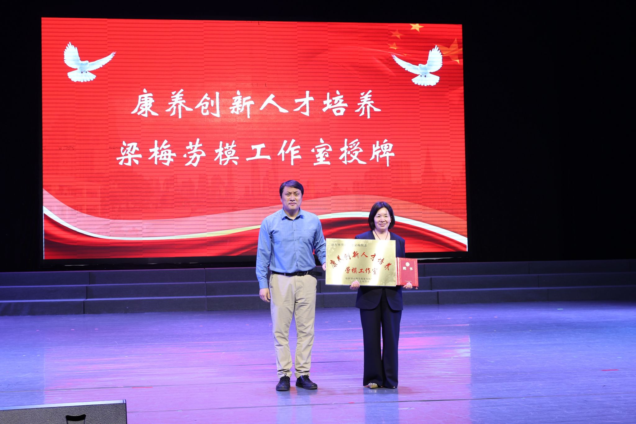 活动现场,孙卫芳为“双师型”教师培养培训基地授牌;教师发展中心主任刘伟为梁梅颁发聘书,正式成立“康养创新人才培养劳模工作室”。