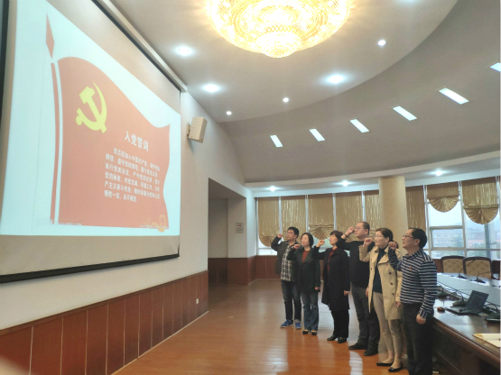 王启高书记首先分享了自己的入党初心,讲述自己的在教学的丰厚成绩,工作中做到吃苦在前、享乐在后,一心一意为教育事业作贡献。接着康管系李培同志重读入党志愿,从入党申请书中重忆当年的坚定信念和入党初心,汲取澎湃的进取激情和为党奋斗的精神力量。组织委员杜金玲同志、宣传委员张美玲同志先后重读了入党志愿书。周荔同志和张维同志分享了在工作中接受磨练,最后光荣地加入中国共产党的入党经历。全体党员面对鲜红的党旗,郑重举起右手,重温入党誓词,在庄严的氛围中再一次接受党组织的检验。