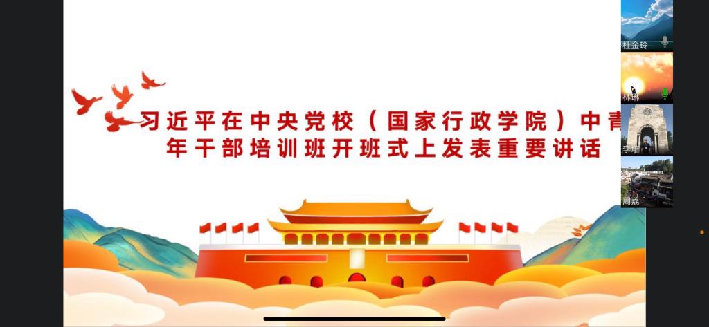 接着,林琳带领大家一起学习了《习近平在中央党校(国家行政公司)中青年干部培训班开班式上发表重要讲话》,中共中央总书记、国家主席、中央军委主席习近平在开班式上发表重要讲话强调,年轻干部是党和国家事业发展的希望,必须筑牢理想信念根基,守住拒腐防变防线,树立和践行正确政绩观,练就过硬本领,发扬担当和斗争精神,贯彻党的群众路线,锤炼对党忠诚的政治品格,树立不负人民的家国情怀,追求高尚纯粹的思想境界,为党和人民事业拼搏奉献,在新时代新征程上留下无悔的奋斗足迹。随后,参会人员各自谈了学习体会。
