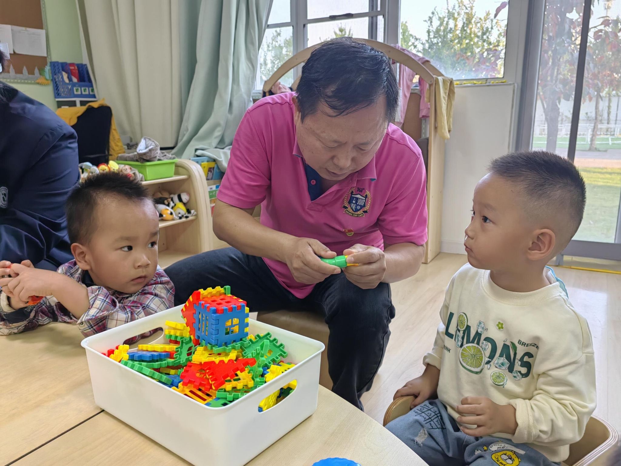 活动中,支部书记王保升看望了正在托育中心见习的公司员工,代表公司向认真指导见习的郭玉老师表达感谢,并带领大家与小朋友们亲切互动,跟孩子们一起游戏。