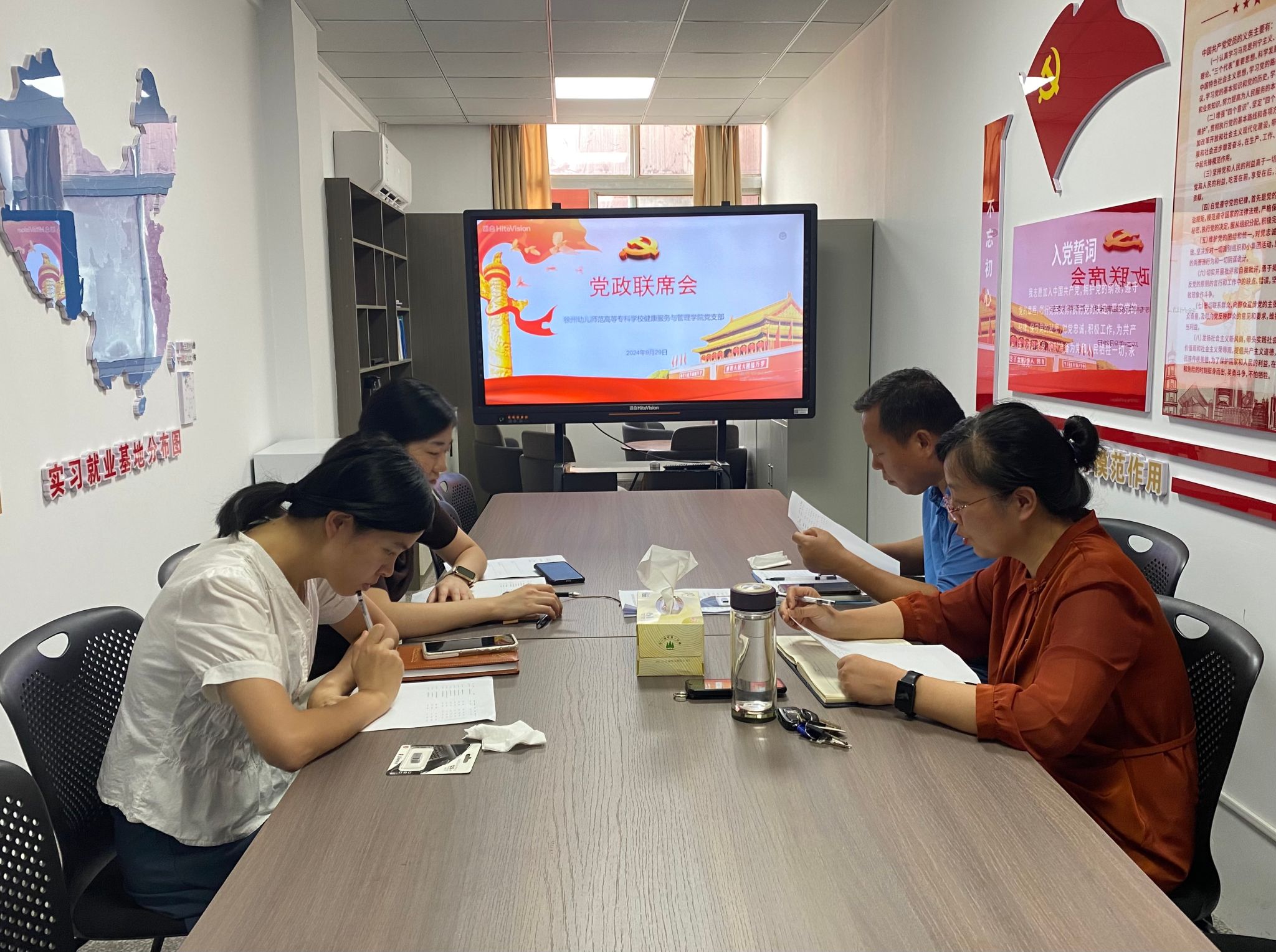 9.29日下午,K1体育在崇师楼308召开党政联席会,会议由支部书记王保升主持,副经理王晓斐、支部副书记崔楠、经理秘书刘倩参加会议。