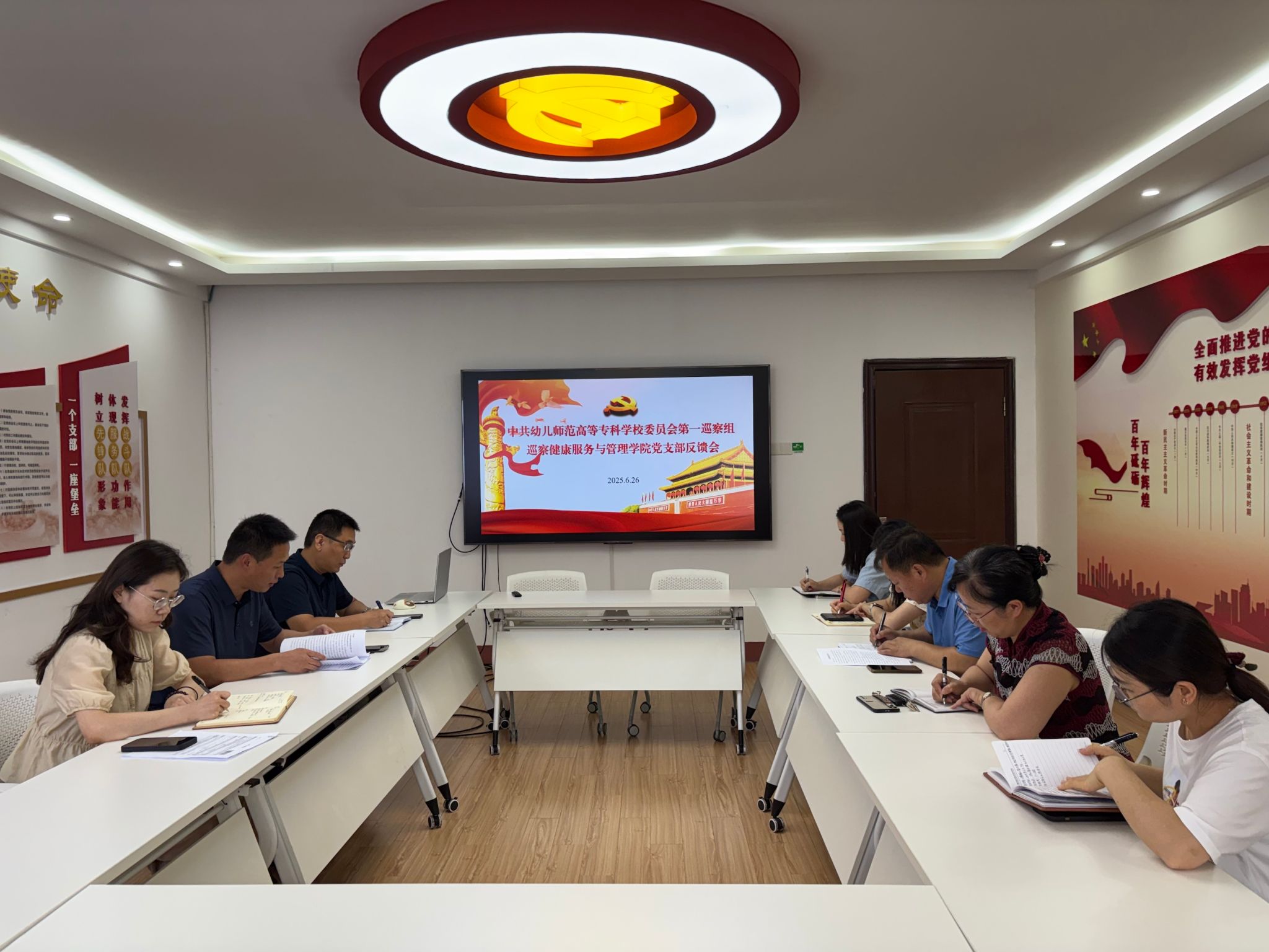 2025年6月26日中共幼儿师范高等专科公司委员会第一巡察组巡察公司党支部反馈会在崇师楼206召开。公司党委第一巡察组就对公司的巡察情况进行反馈会议由巡察组组长何彬主持,健康服务与管理公司领导班子及教代表参会。