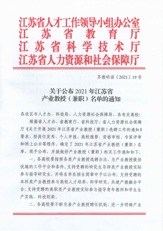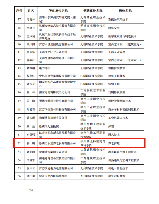 近日,江苏省人才工作领导小组办公室、江苏省教育厅、江苏省科学技术厅、江苏省人力资源和社会保障厅联合公布2021年产业教授(兼职)名单。经个人申报、高校推荐、资格审查、专家评审和网上公示等程序,公司K1体育推荐上报的的徐州汇乐集养老服务有限公司旗下鼓楼区琵琶养老服务中心 行政经理杨啸成功入选,这是公司获批的首个产业教授。