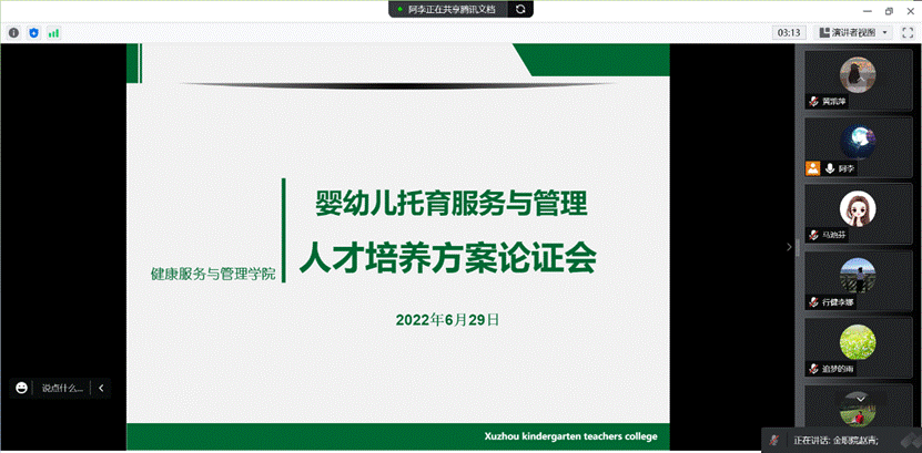 本次论证会以线上汇报和专家点评的方式进行。首先婴幼儿托育服务与管理专业负责人张海清老师汇报了专业人才培养方案中面向的产业、岗位、人才需求、专业人才培养规格、课程体系等方面的内容。论证会专家们认真听取了论证报告,围绕国家教育方针政策,对照高等职业公司产品标准,对课程体系的构建和改造提出了建设性与可行性意见,对培养方案的进一步修订完善起到了指导性作用。