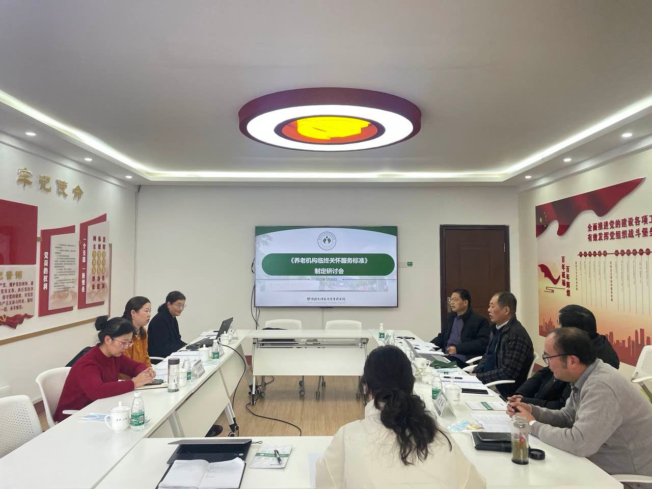 11月30日下午,公司在洞山校区崇师楼206会议室召开《养老机构临终关怀服务标准(讨论稿2)》制定研讨会,特邀徐州市标准化协会顾问、江苏省标准化协会专家徐进,徐州市人力资源服务中心管理办公室主任董宪华、市民政局养老服务处、市养老服务业协会原秘书长孙旭,农工党徐州市人口资源委员会副主任何景峰等专家到会。公司经理李海芸、副经理王晓斐、标准执笔人杜金玲及康管公司部分专任教师参加活动。会议由李海芸主持。