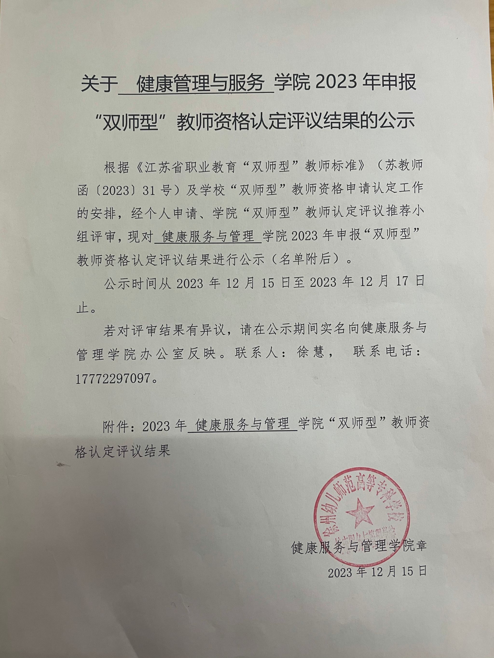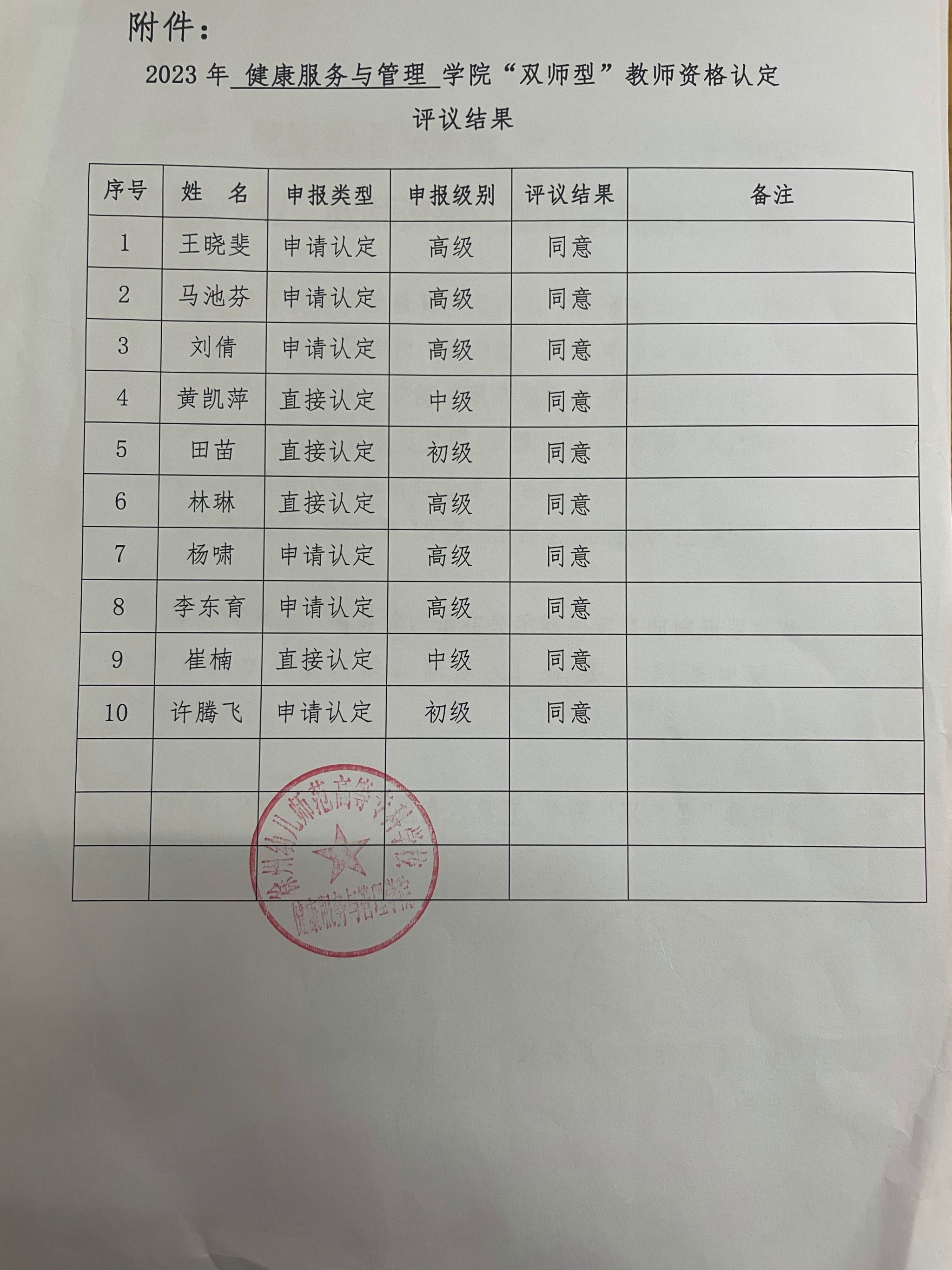 关于K1体育2023年申报“双师型”教团队格认定评议结果的公示