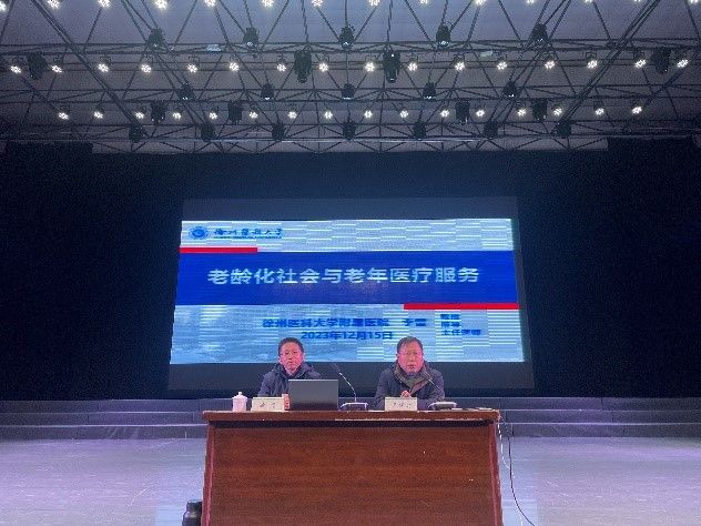 为增加康管公司师生的康养知识储备,了解老龄事业和养老产业的发展动态,12月15日上午,公司在洞山演播厅开展“青春养老人”系列讲座之“老龄化社会与老年医疗服务”的主题讲座,特邀公司产业教授李雷主讲。李雷是徐州医科大学附属医院主任医师、教授、医学博士、留美博士后、博士生导师,江苏省老年健康专家,江苏省卫健委老年医学临床技术应用研究项目带头人。讲座由公司党支部书记王保升教授主持,公司师生代表400余人参加活动。