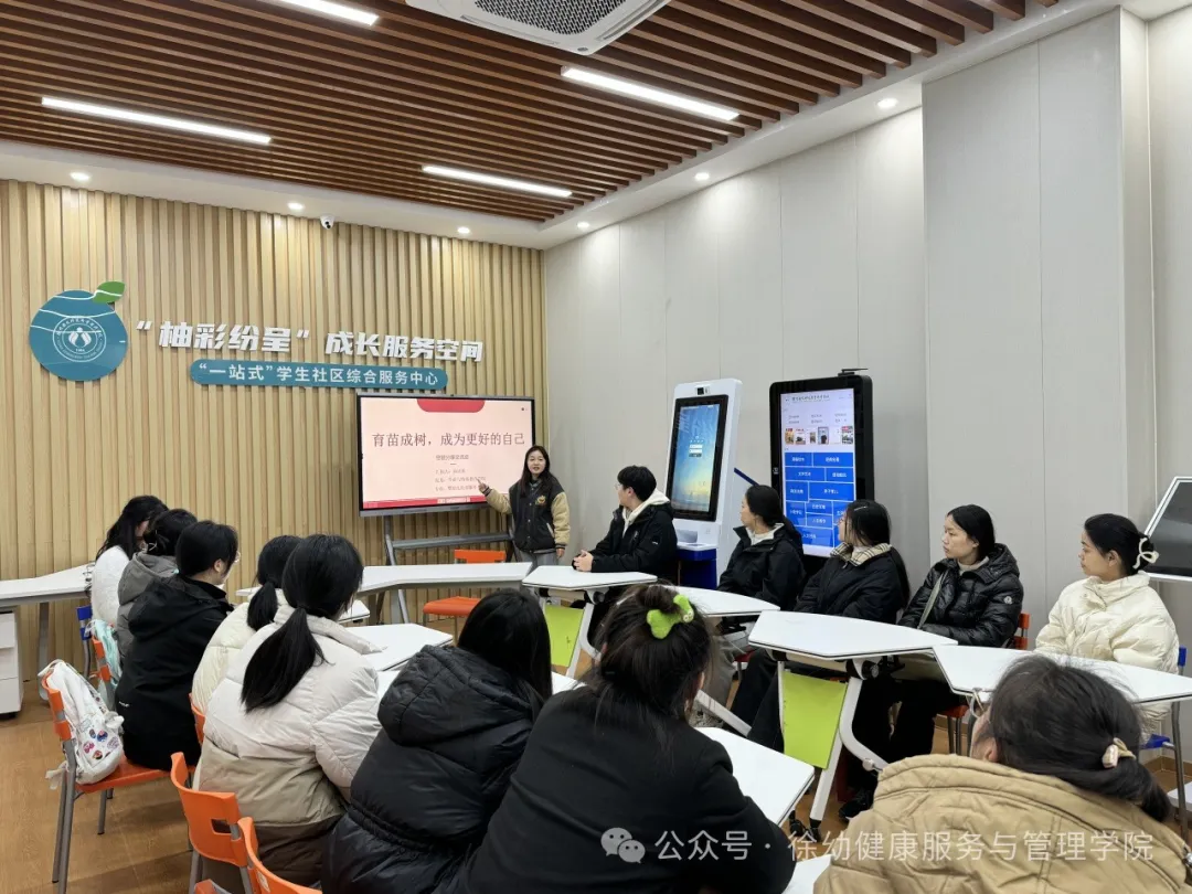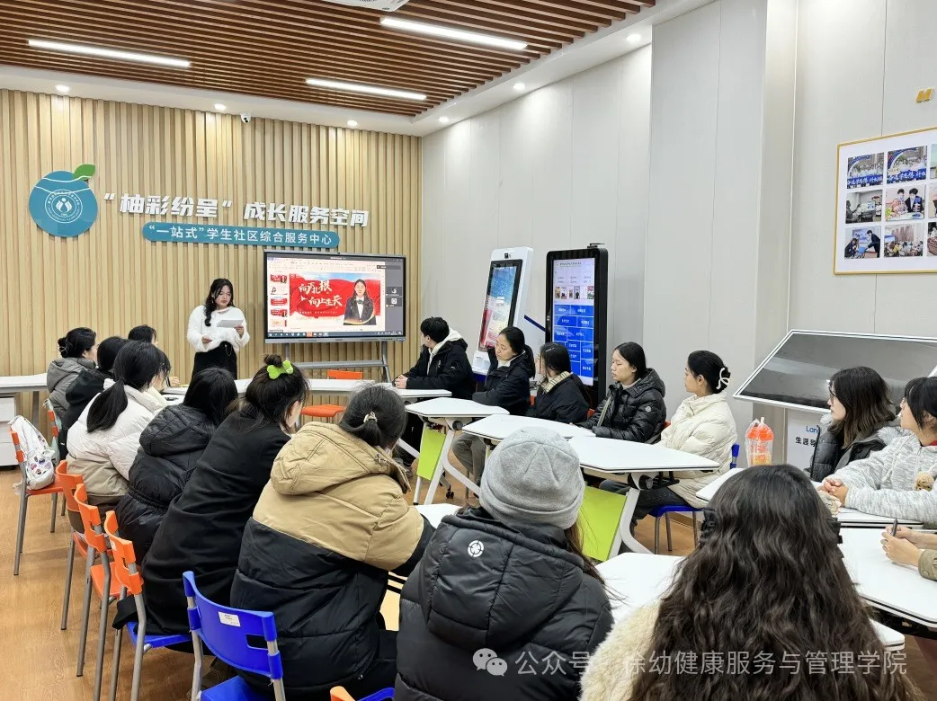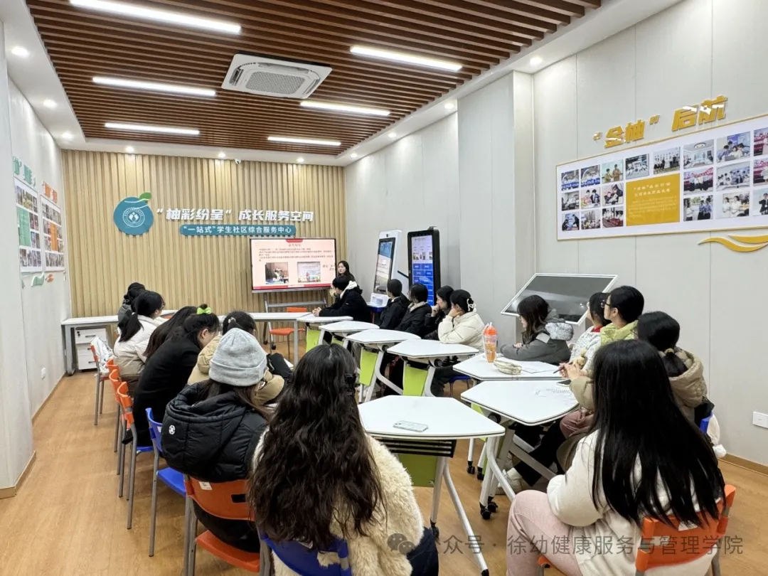 2024年12月5日下午,第四期“徐幼微榜样”朋辈经验分享交流会在洞山校区尚美楼“一站式”员工社区综合服务中心如期开展。此次活动由公司承办,本期邀请到公司22级老年保健与管理1班王梦炜同学、学前与特殊教育公司22级婴幼儿托育服务与管理班孙思琪同学,为大家分享她的学习、参赛、实习等经验,旨在引导同学们做好老员工涯规划,追求卓越目标,并一步一步为之奋斗。