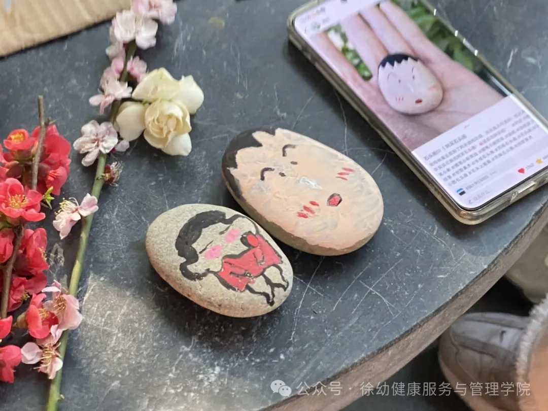 在石头上进行彩绘,发挥想象力,创作独一无二的艺术品。石头象征坚韧与稳定,小柚子们通过彩绘来表达内心的情感与愿望。